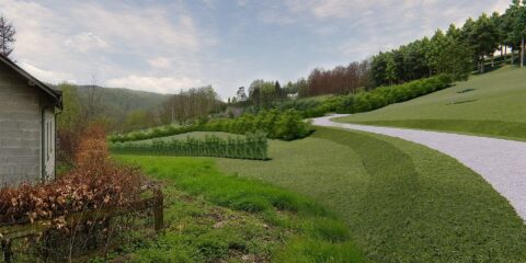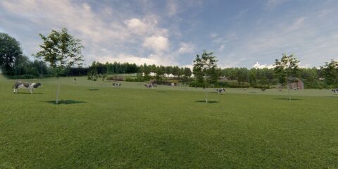 Le projet comprend également l’aménagement de sentiers piétons et d’espaces verts paysagers.