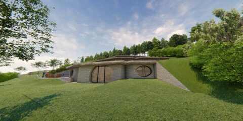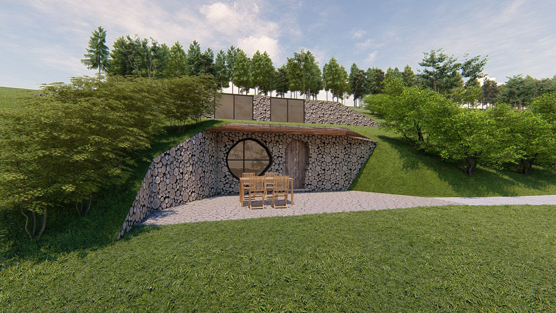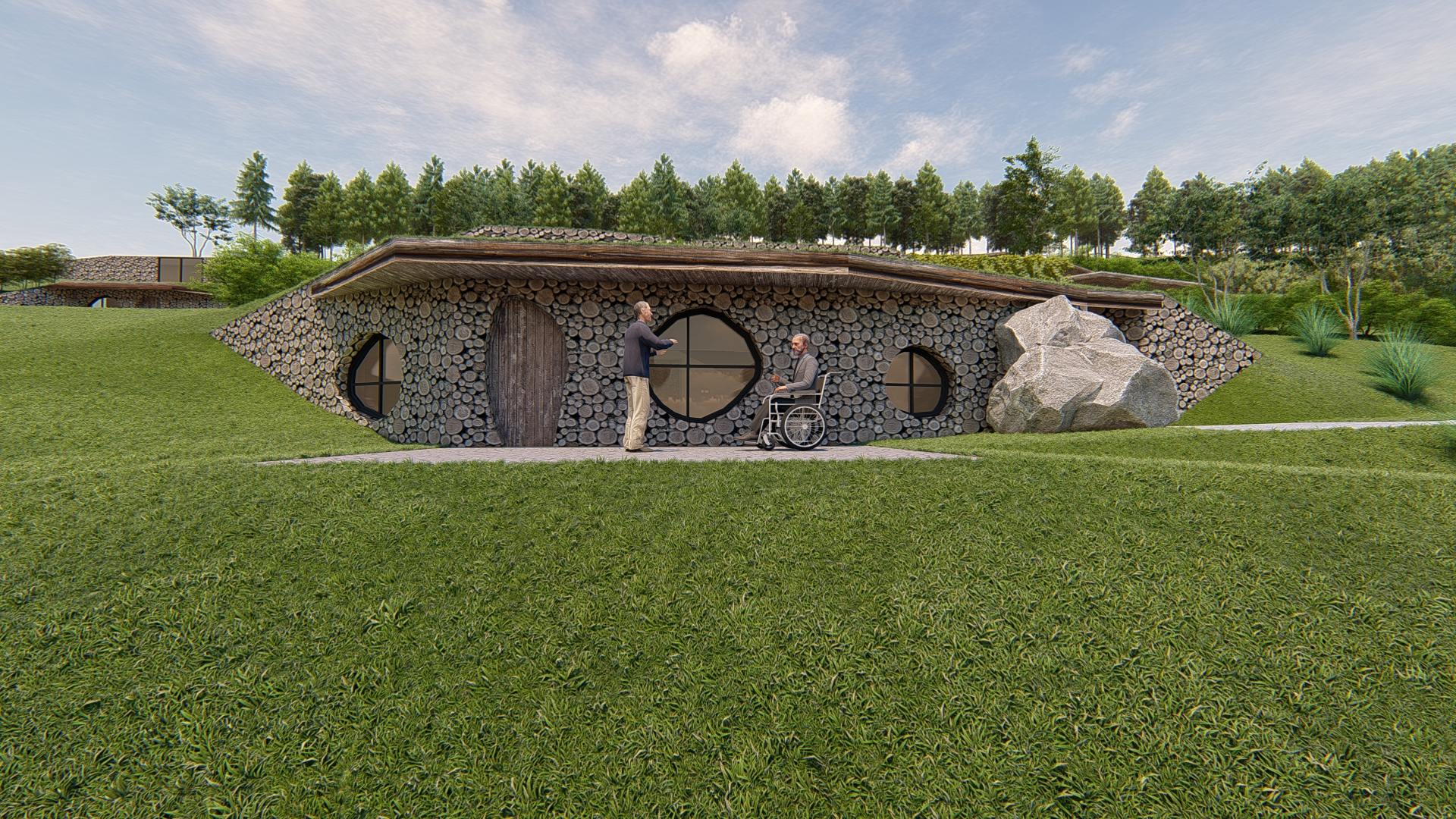 Le hameau propose différentes typologies de constructions dont des logements insolites semi-enterrés dans la pente du terrain.
