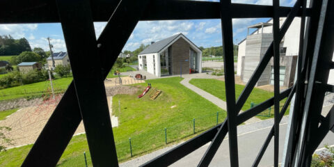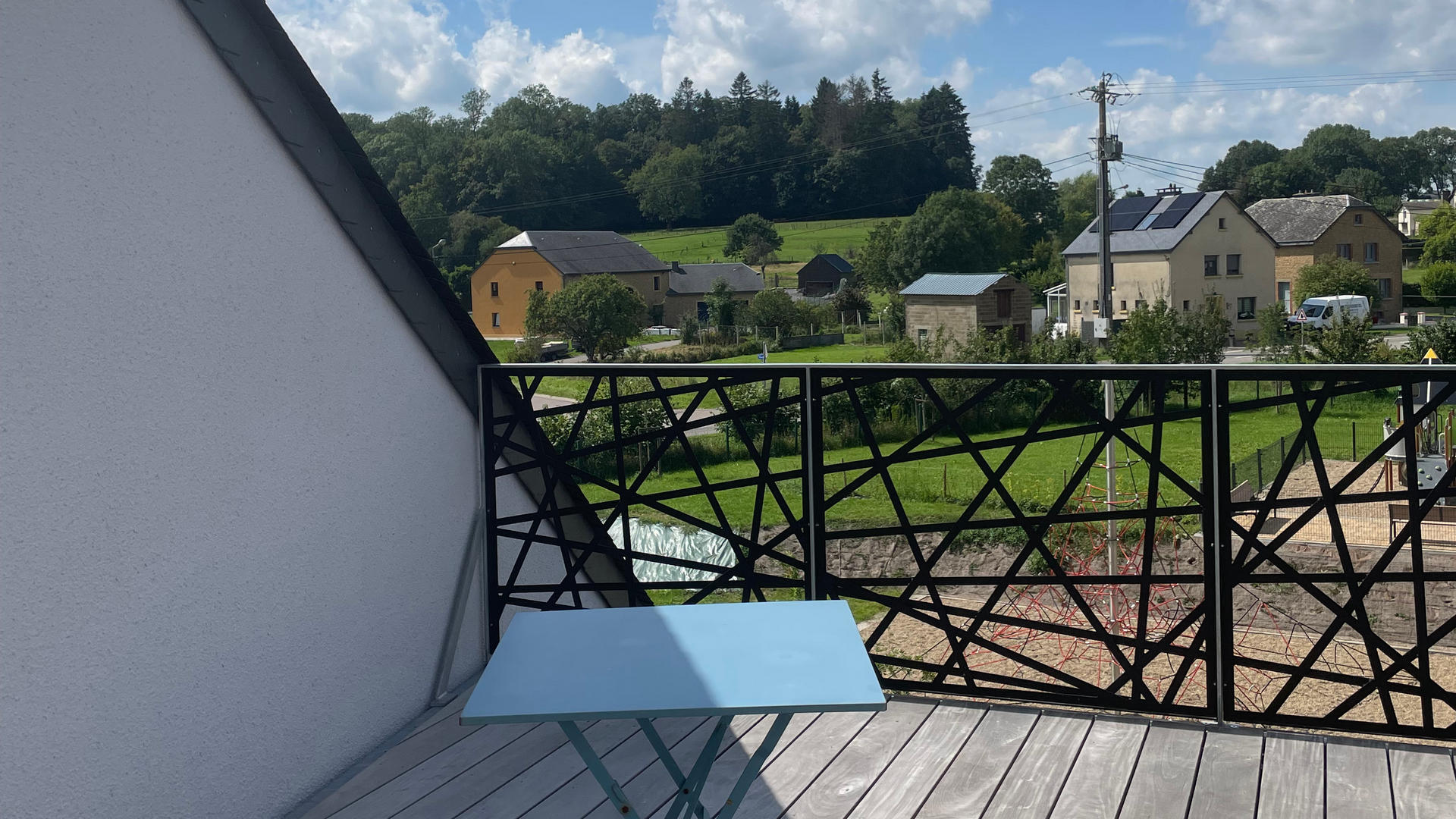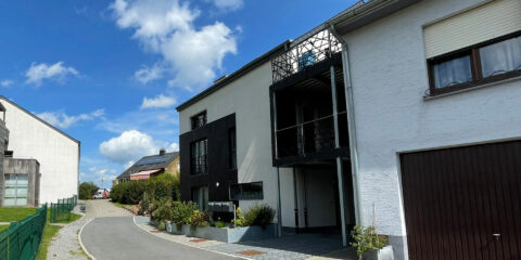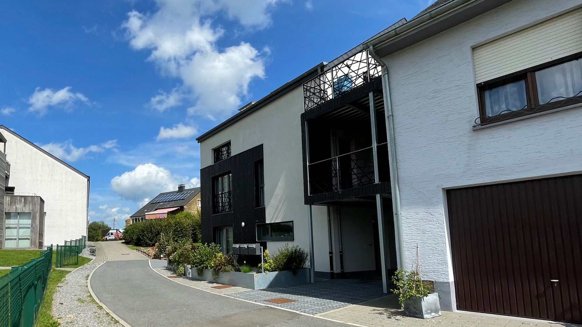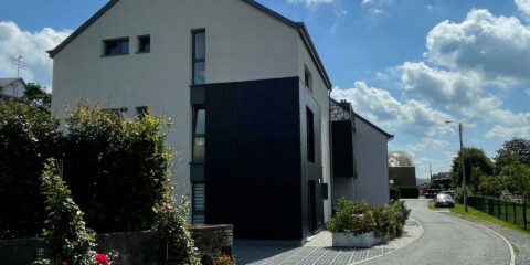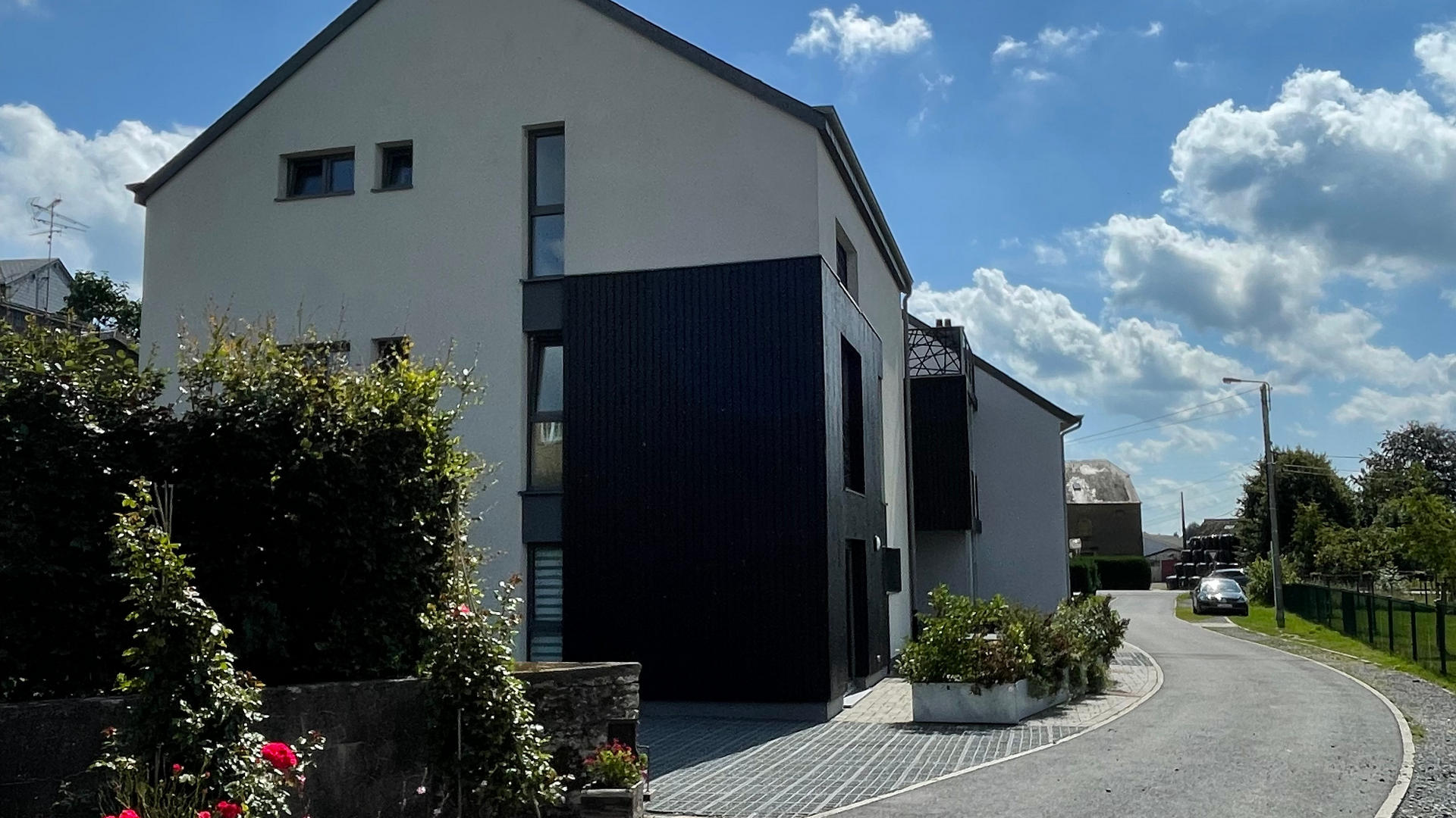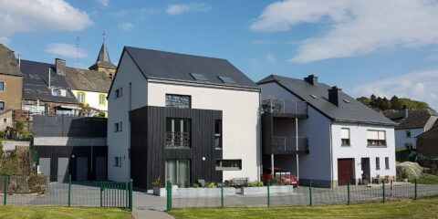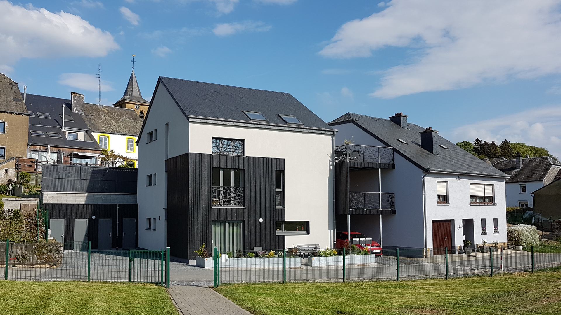 Le projet s’implante en continuité de la maison voisine mais séparée de celle-ci par les accès aux différents appartements et leurs terrasses respectives.