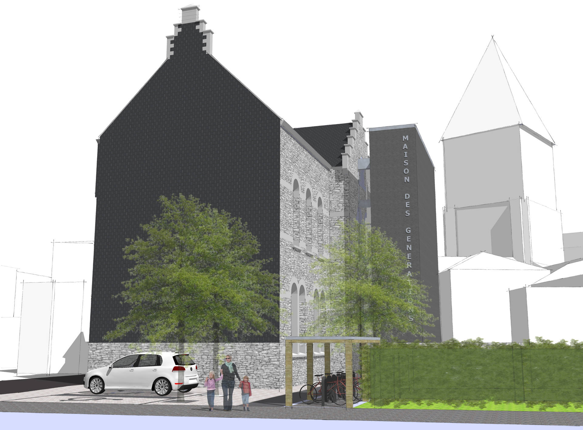 Réaffectation d’un bâti existant initialement dédié à une école en maison des générations, par l’ajout de deux niveaux utiles permettant la création de six salles associatives et d’un espace d’exposition dans les combles.
