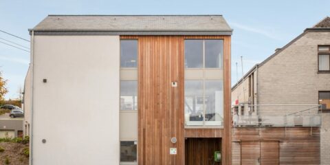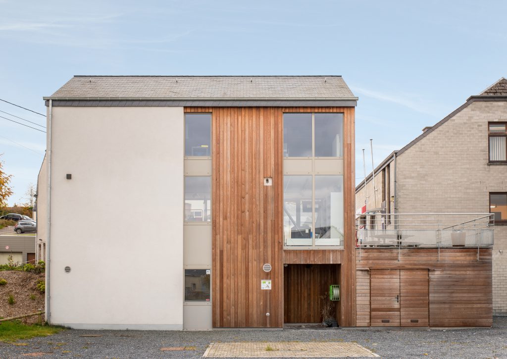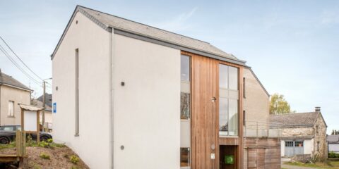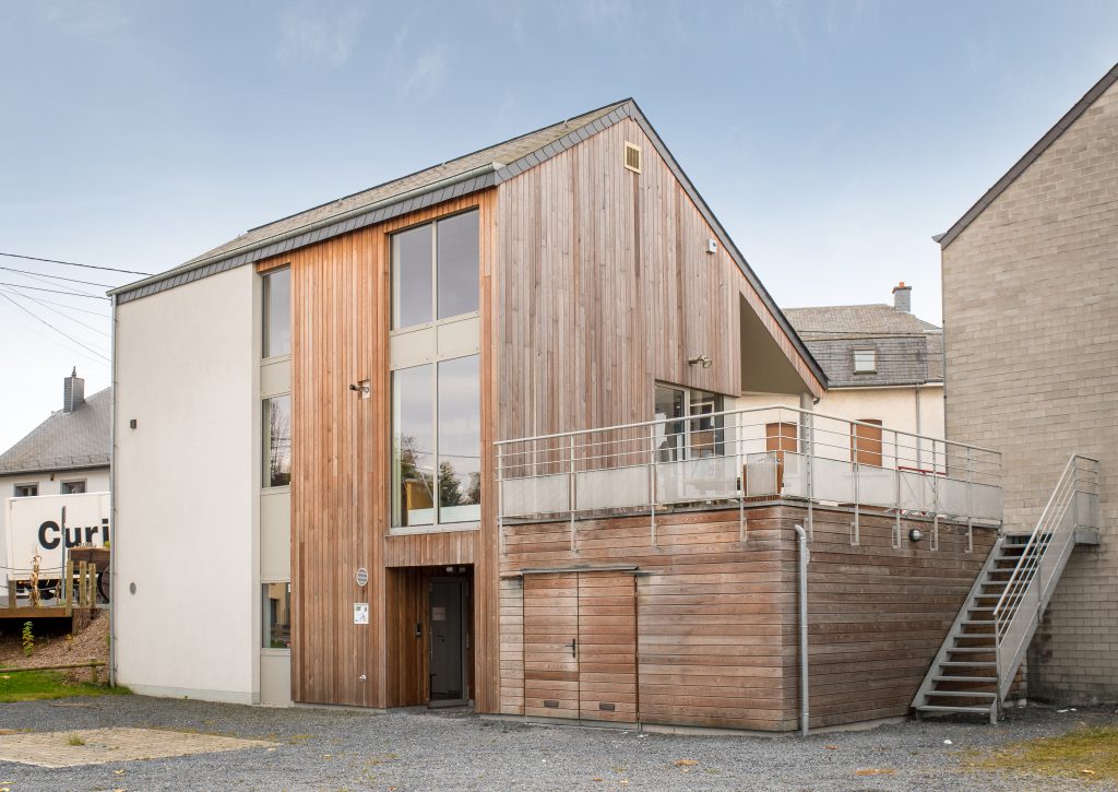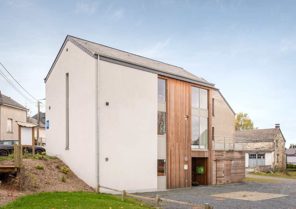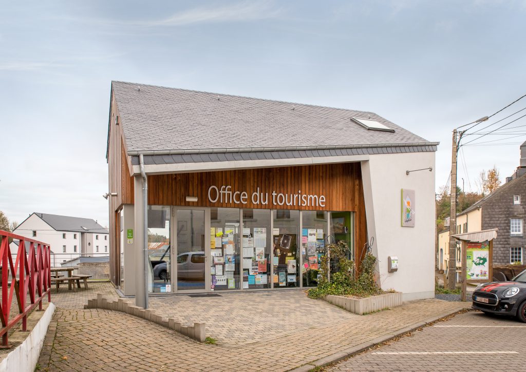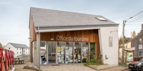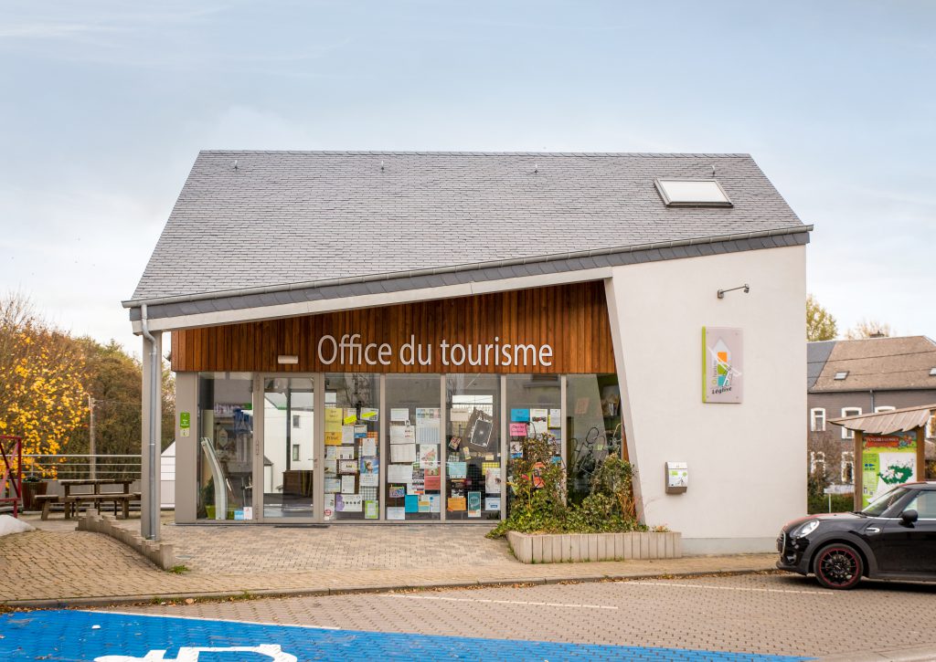 Construction du pavillon du tourisme au centre du village de Léglise.